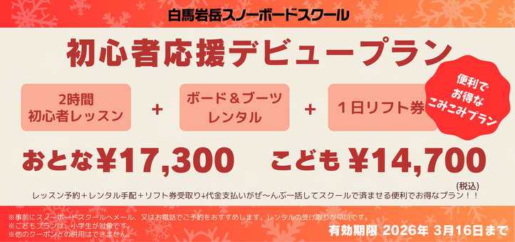 日本スノーボード協会の資格を取ったばかりの方でもしっかり研修させていただくので安心してスタートできます。